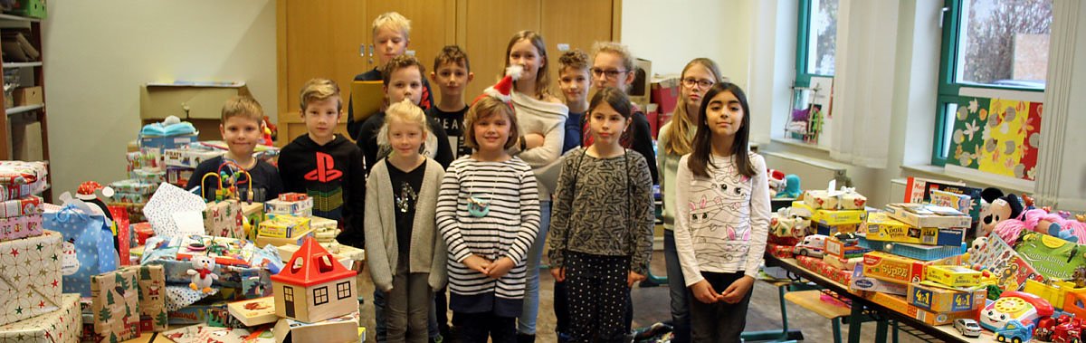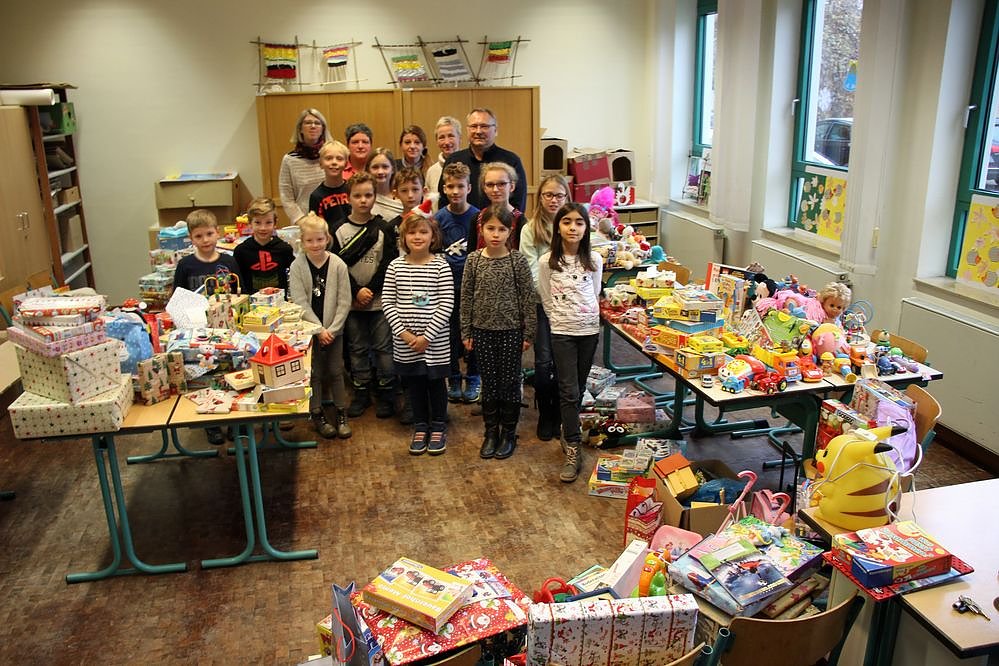 Die Elternvertreter der Schule, sowie Schulleiterin Ellen Neumann hatten wieder Kinder und Eltern der gesamten Schule umfangreich informiert und gebeten, sich an der Weihnachtsaktion zu beteiligen. Es ging darum, dass sich Kinder von ihrem Spielzeug zu Gunsten bedürftiger Kinder trennen.