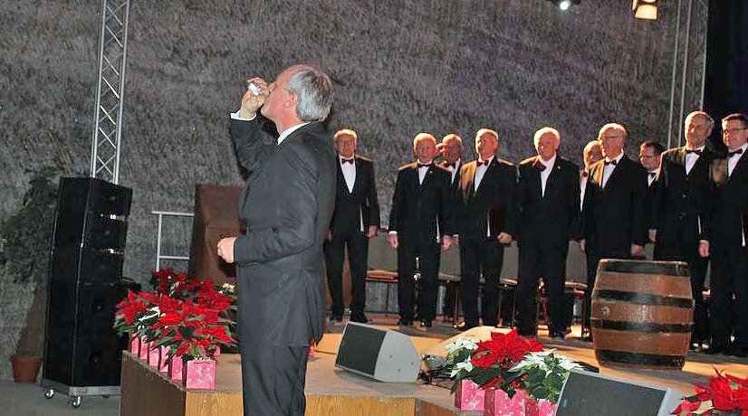 Abschlussritual ist das Trinken eines klaren Schnapses und der Geschäftsführer gibt das Signal und macht den Anfang. Damit endet der offizielle Teil der Barbarafeier und man geht zu einem gemeinsamen Essen über.