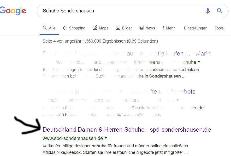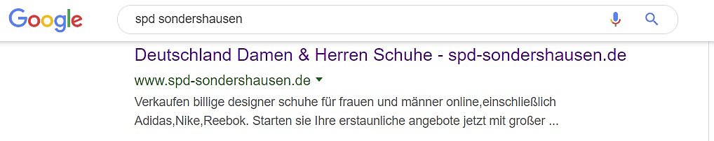 Schon die Anzeige bei Google lässt erkennen, hier stimmt etwas nicht. Die SPD Sondershausen wird keine Schuhe verkaufen.