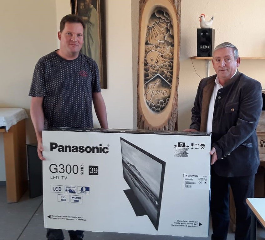 Herr Andreas Kunze von der Hopfenverwertungsgenossenschaft e.G. aus Wolznach überreichte den Bewohner*innen des soziotherapeutischen Wohnheims für Suchtkranke in Freienbessingen vertreten durch Herrn Kuschel drei neue Flachbildfernseher.