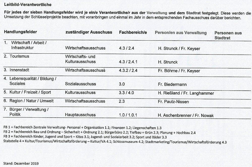 Autor: khhFestlegung der leitbildverantwortlichen Personen aus dem Stadtrat für die einzelnen Handlungsfelder des Leitbildes der Stadt Sondershausen 2030