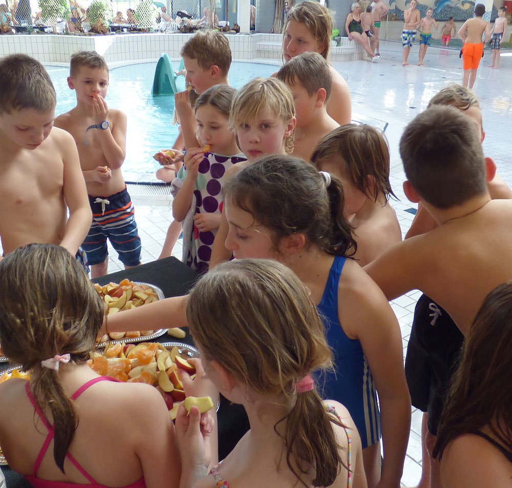 Mit zahlreichen Spielen im Wasser begeisterte das Team der Kyffhäuser-Therme die kleinen Gäste. Das traditionsreiche Rennrutschen bildete den Auftakt. Beim Dickmann-Wettessen, Wetttauchen und einem Heimatquiz quer durch die Badelandschaft kämpften die Mädchen und Jungen um den Sieg. Mit einem kurzen Abstecher in die Sauna der Kyffhäuser-Therme wurde den Kindern spielerisch gezeigt, warum das Schwitzen bei heißen Temperaturen und hoher Luftfeuchtigkeit gesund ist.