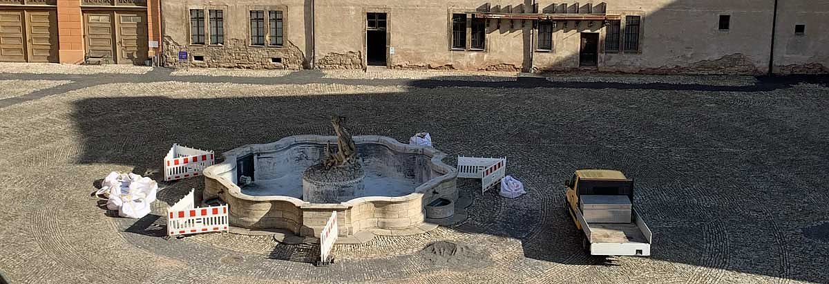 Autor: khhDas Pflaster um den Brunnen ist schon wieder verlegt. Als nächstes wird der ebene Laufweg aus Granitplatten wiederhergestellt und bis zum Ende des Alten Nordflügels erweitert. Außerdem wird die Zugangssituation zu den sanitären Anlagen des Schlosshofes verbessert.