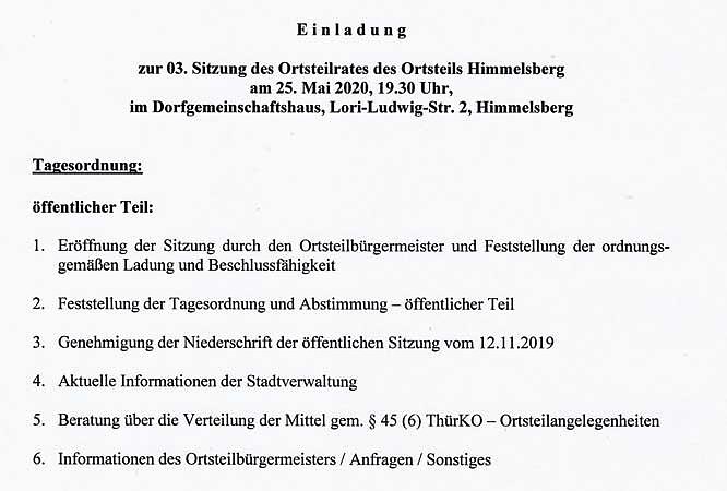 Ortsteilratssitzung Himmelsberg am 25. Mai 2020.