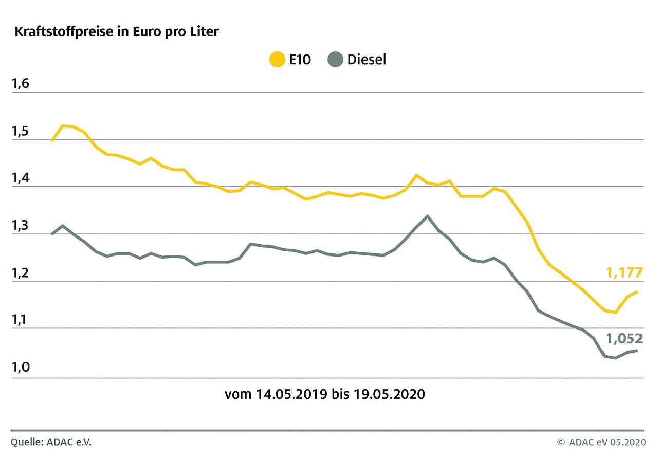 Gründe für die wieder anziehenden Preise sind der angesichts der Corona-Lockerungen zunehmende Straßenverkehr, der die Kraftstoff-Nachfrage anfacht, vor allem aber die Stabilisierung am Rohölmarkt. Ein Barrel der Sorte Brent kostet aktuell rund 34 Dollar, das sind vier Dollar mehr als in der Vorwoche. In den ersten vier Monaten des Jahres waren die Notierungen von rund 70 auf zeitweise 20 Dollar abgestürzt. Rohöl hatte somit rund 70 Prozent an Wert verloren.