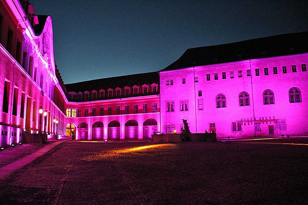 "Genießen kann man das Schlossleuchten entweder von seinem Balkon, seiner Terrasse oder - mit genügend Abstand - vom Platz zwischen Schlosstreppe und Innenhof."