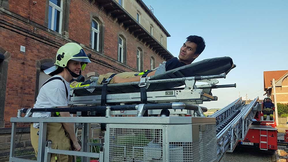 Über die Drehleiter wird beispielsweise gerettet, wenn ein Patient nur liegend transportiert werden kann und die baulichen Gegebenheiten des Gebäudes dies nicht zulassen.