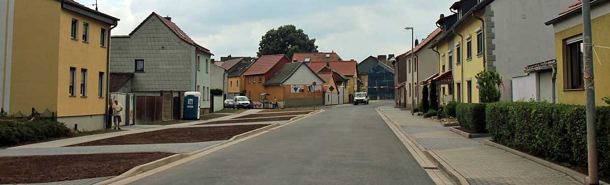 Anschließend erfolgte im Zuge des Straßenausbaus der grundhafte Ausbau der Fahrbahn sowie der Gehwege und Nebenanlagen. Ebenfalls wurde die vorhandene Straßenbeleuchtung auf moderne LED-Technik umgerüstet. Hinsichtlich der Linienführung und der Raumaufteilung wurde sich an dem vorhandenen Bestand orientiert.