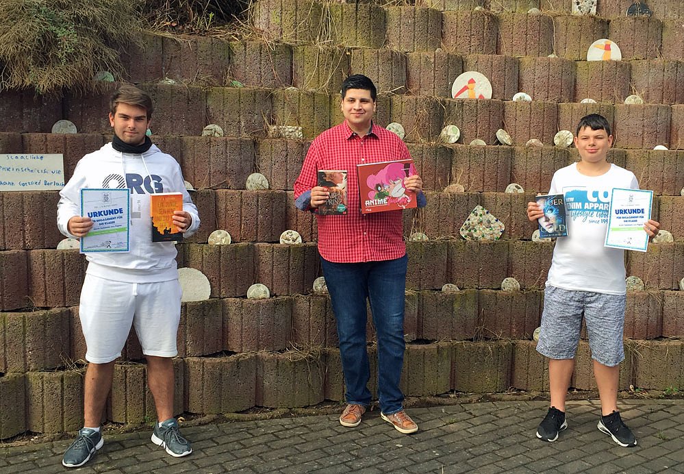 Die drei stolzen Preisträger erhielten dann ihre Urkunden sowie je einen Büchergutschein und ein Buch. Für das Sponsoring der Gutscheine und eines tollen Buchpaketes konnten wir in diesem Jahr wieder Buecher.de gewinnen, wofür wir sehr dankbar sind!, so Walk weiter.