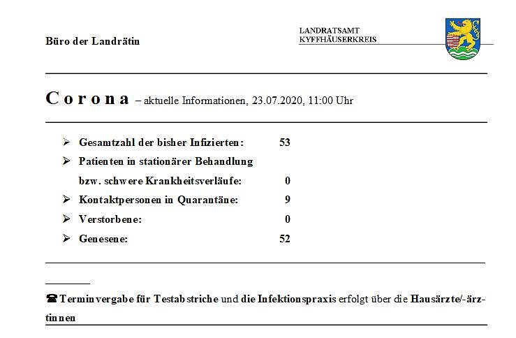 Autor: khhZum Vortag gibt es keine Veränderungen bei den Infizierten, die Zahl der Kontaktpersonen aus dem Altkreis Sondershausen verringerte sich um 2 Personen.