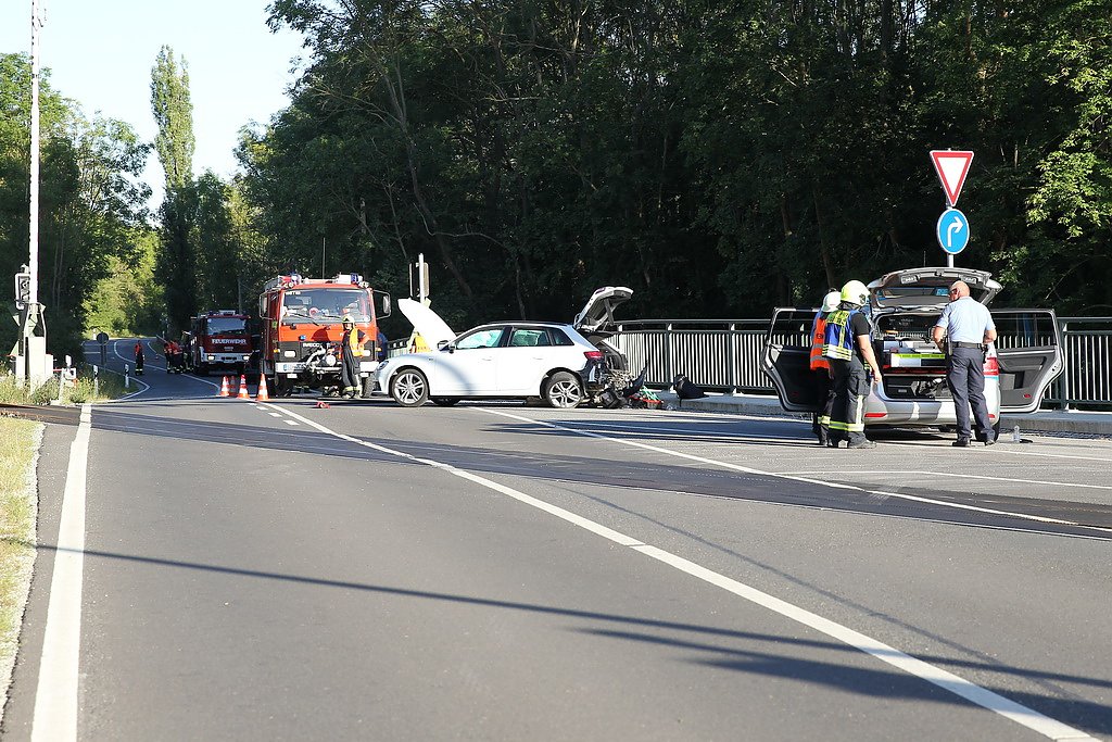 Ein in Richtung Wasserthaleben fahrender Audi A3 beabsichtigte vor dem Bahnübergang nach links in Richtung Helbewehr abzubiegen. Dabei übersah der Fahrer einen im Gegenverkehr befindlichen Audi A4. Es kam zur Kollision. Der Audi A3 wurde dabei um 180 Grad gedreht. Dabei riss unter anderem das rechte Hinterrad ab.