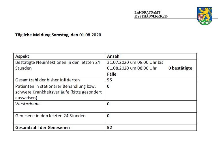 Hier die tägliche Corona-Meldung aus dem Landratsamt Kyffhäuserkreis...
