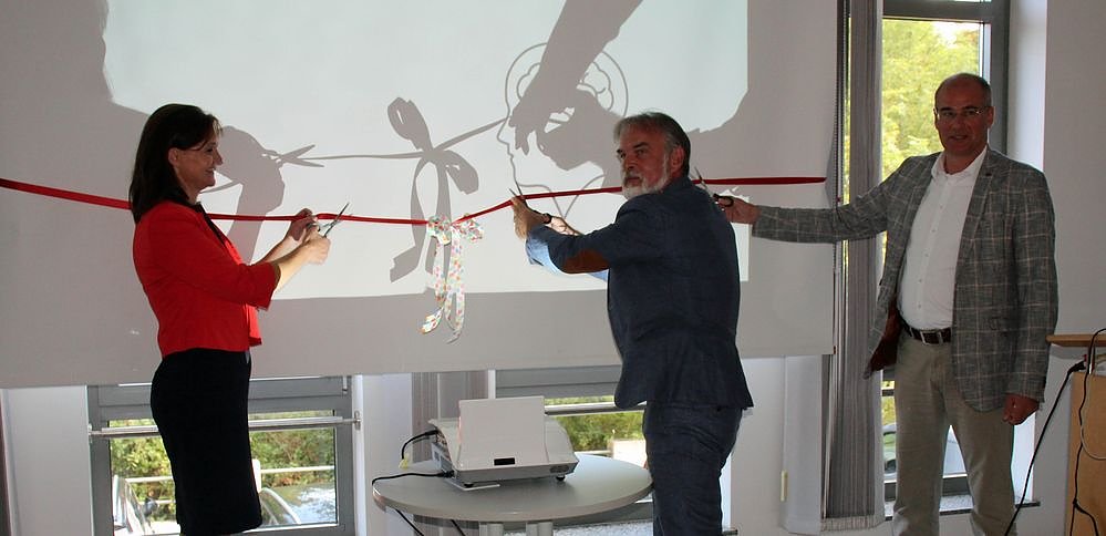 Mit dem Durchschneiden des symbolischen Bandes durch Landrätin Antje Hochwind-Schneider, aus dem Kyffhäuserkreis Landrat Harald Zanker aus dem Unstrut-Hainich-Kreis und Landrat Matthias Jendricke aus dem Landkreis Nordhausen wurde im Landratsamt im Kyffhäuserkreis das Webportal offiziell eröffnet