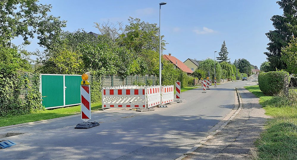 Hier neigt sich eine Baustelle dem Ende entgegen. Die Gräben in der Gerhard-Hauptmann-Straße sind bereits verfüllt und der erst Asphalt ist bereits eingebracht.