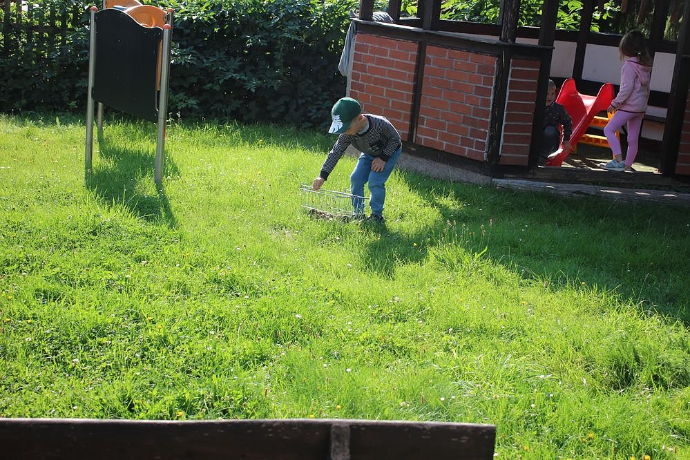 An anderer Stelle wurde auf der Spielwiese heruntergefallenes Obst aufgelesen. Auch Steine und heruntergefallene kleins Äste wurden bei dieser Aktion gesammelt. Spielend Saubermachen kam gut an und machte die Kindern Spaß.