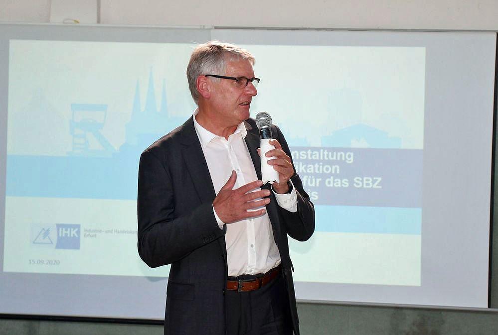 Thomas Fahlbusch von der IHK Erfurt, zeigte die Möglichkeiten von Wirtschaft und Handel auf. Mit dieser Ausbildung, appellierte er, wie schon die Rednerinnen vor ihm, stehen die besten Voraussetzungen offen, erfolgreich im Berufsleben zu sein.