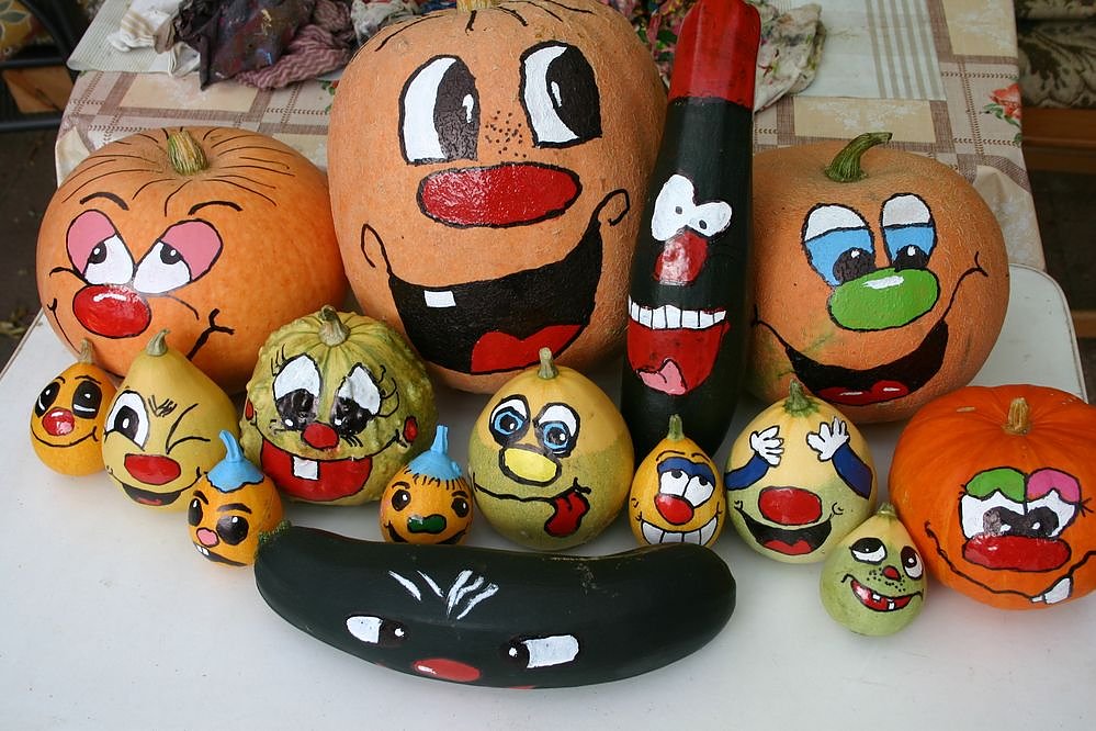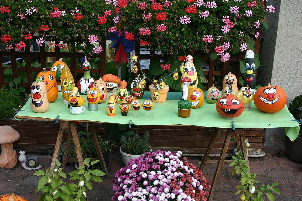 Die Kürbisse wollen mit ihrer Fröhlichkeit Freude verbreiten, gerade jetzt in der Corona Zeit.