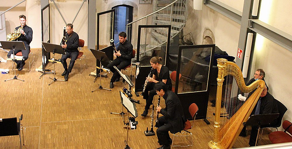 Zu Beginn des Konzerts gab es von Wolfgang Amadeus Mozart die Serenade für Bläser KV 375 Es-Dur. Zum Abschluss des sehr hörenswerten Konzerts gab es von Peter I. Tschiikowsky aus Der Nußknackrer" (arrangiert für Bläsernanett von Andreas N. Tarkmann) u.a. die Ouvertüre miniature.