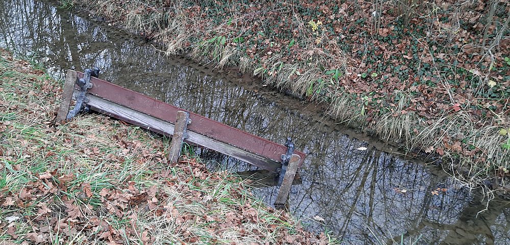 Denn dort, wo die Bank in den Graben geworfen wurde, stand sie vorher nicht. Sie wurde erst hier her getragen, um sie dort hinein zu werfen.