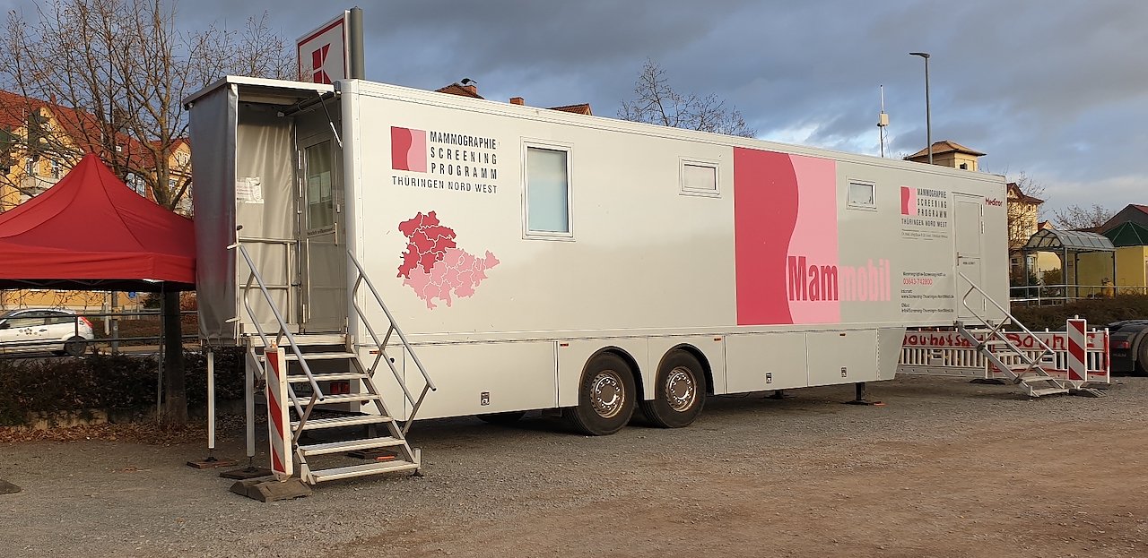 Das Mammobil steht derzeit in Sondershausen. Es werden die Frauen wohnhaft in den Postleitzahlen 99706 Sondershausen, 99713 Ebeleben und 99718 Greussen