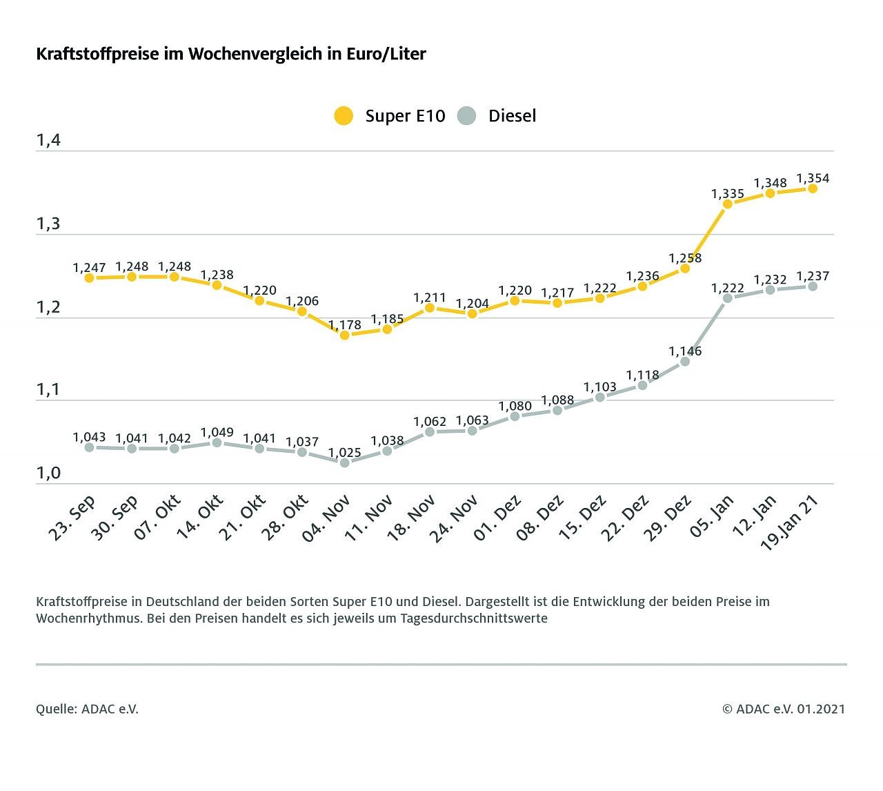 Die Kraftstoffpreise in Deutschland sind im Vergleich zur vergangenen Woche leicht gestiegen. Der Preis für einen Liter Super E10 kletterte um 0,6 Cent auf 1,354 Euro im bundesweiten Durchschnitt. Diesel verteuerte sich binnen Wochenfrist um 0,5 Cent und kostet derzeit im Schnitt 1,237 Euro. Dies zeigt die wöchentliche ADAC Auswertung der Kraftstoffpreise...