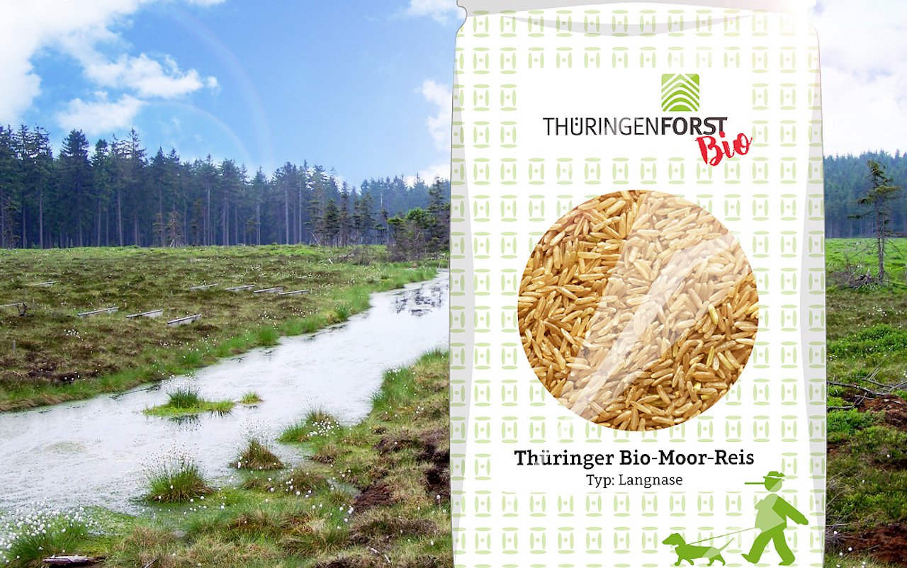 Viele dieser Moore wurden in den letzten 25 Jahren durch ThüringenForst saniert und befinden sich in einem stabilen ökologischen Gleichgewicht. Jetzt prüfen Thüringens Grünröcke die weitergehende Nutzung dieser sehr nassen Standorte für ein neues Geschäftsfeld: Den Reisanbau. Hierfür stünden rund 300 Hektar, dies entspricht knapp 400 Fußballfeldern, zur Verfügung. Vorteil des Nassreisanbaus: Kaum Schädlinge und Unkraut, dafür Bioqualität durch Quellwasser aus dem Thüringer Wald und Schiefergebirge.