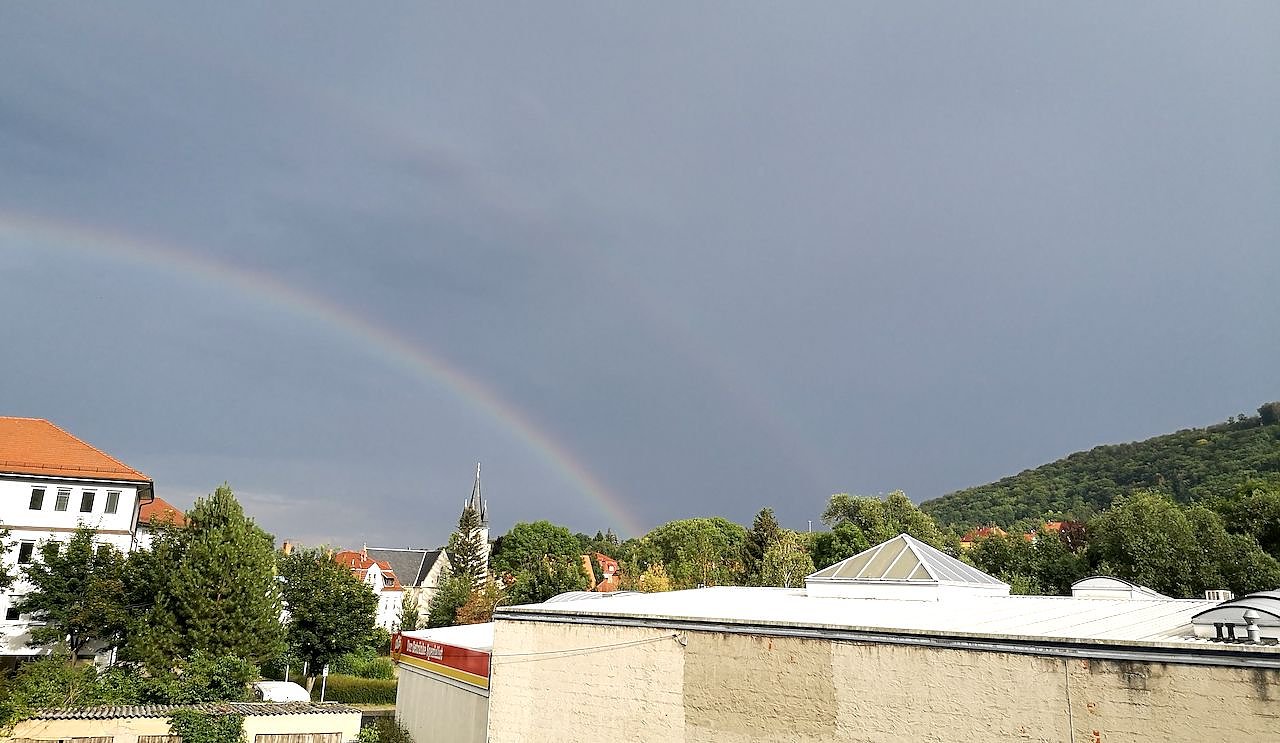 Gleich zwei Regenbögen gab es heute Nachmittag über Sondershausen zu bewundern. Unsere Leser Familie Leipold haben aber nicht nur gestaunt, sondern auch beherzt zur Kamera gegriffen und das Ereignis für die Nachwelt festgehalten...
