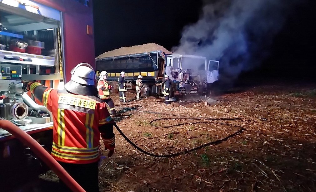 Autor: redVor Ort wurde festgestellt, dass der LKW sich auf einem Acker befand, auf dem Mais abgeerntet wurde. Durch den nassen und aufgeweichten Boden hatten die Einsatzkräfte Schwierigkeiten bis zur Einsatzstelle zu kommen, wo die Zugmaschine eines Sattelaufliegers brannte.
