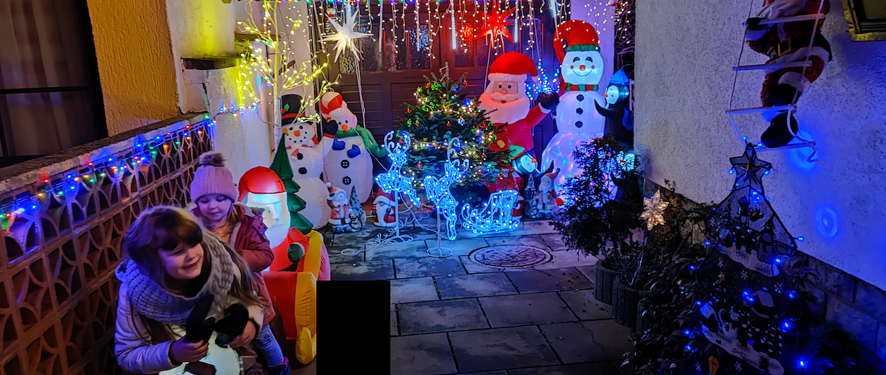 auf den Bildern ist das Haus bzw die einfahrt meiner Eltern festgehalten, wo so manche kinderaugen zu strahlen anfangen und der Kindergarten Arche Noah gerne dran vorbei geht! Die Fotos habe ich selbst gemacht und wie gesagt, es handelt sich um das haus meiner Eltern und mein Vater Siggi dekoriert es jedes Jahr liebevoll für seine Enkel und auch für andere kinder um die augen zum stralen zu bringen