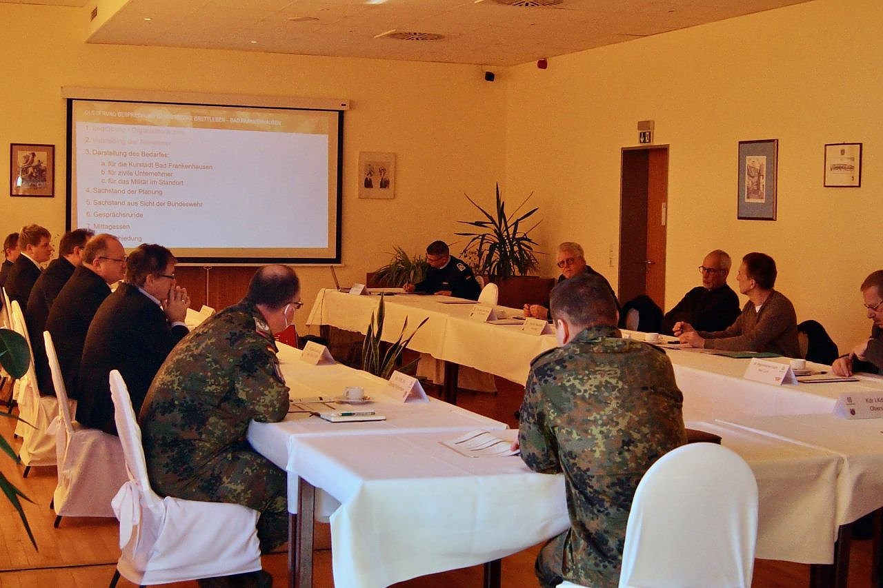 Um diesen Spagat trotz allem so gut es geht zu meistern, trafen sich am Mittwoch Wirtschaftsvertreter, Politiker der Region und des Bundes sowie Vertreter der Bundeswehr zu einem gemeinsamen Erfahrungsaustausch in der Kyffhäuser-Kaserne Bad Frankenhausen. Das Ziel ist es, alle Interessenbereiche das Land Thüringen, regionale Wirtschaftsvertreter, das Militär und Ausschussmitglieder auf Bundesebene an einen Tisch zu bringen, die gegenseitigen Sichtweisen auszutauschen und für alle ein einheitliches Lagebild zu schaffen, führt Oberstleutnant Sven Heidel, Kommandeur des Versorgungsbataillon 131 und Standortältester der Kyffhäuser-Kaserne, in das Treffen ein.