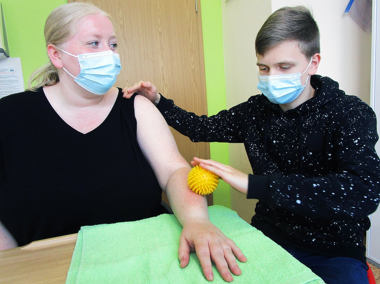 In der Praxis selbst erlebten sie bei den Behandlungen wie gut die Patienten zum Beispiel die Bewegungsschulung oder auch Denkspiele meisterten und erfuhren, wie diese Therapien bei den unterschiedlichen Erkrankungen helfen und wirken. Die Therapieknete und das Paraffinbad probierten die Schüler aus und konnten die Wirkung unmittelbar selbst feststellen, als sich das flüssige Wachs um die Hände legte, diese erwärmte und die Durchblutung anregte.