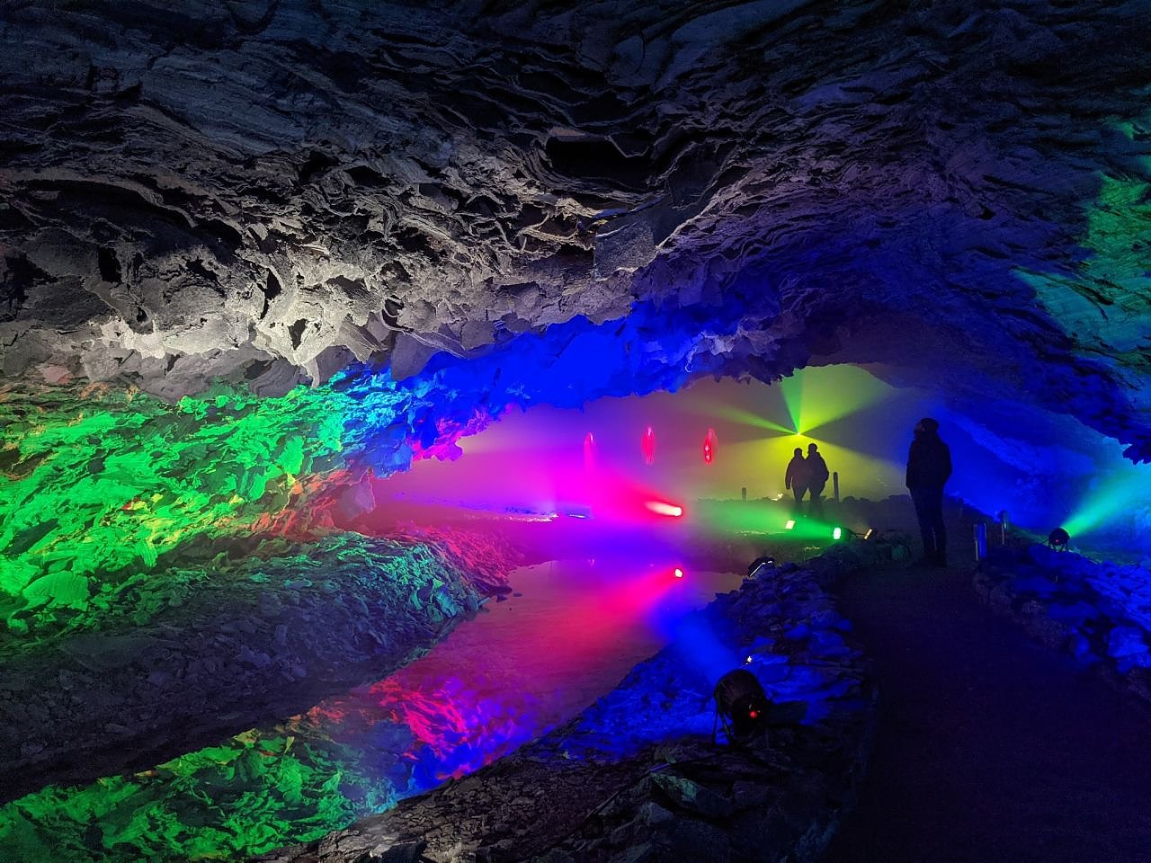 Wolfgang Flammersfeld und sein Team von WORLD OF LIGHTS sind geniale Meister der Lichtkunst und sie werden 2022 bereits zum 10. Mal das unterirdische Kaiserreich in einen magischen Farbenrausch versetzen. Mit unzähligen Scheinwerfern, Projektoren, LEDs und eigens kreierten Lichtobjekten gestalten sie die 15.000 m² große Höhle zu einer riesigen natürlichen Kunstgalerie.