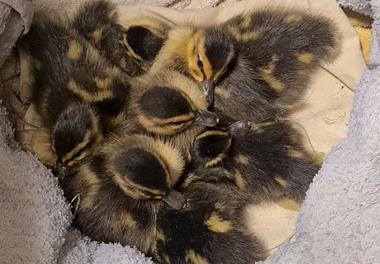Gegen Mitternacht gelang es Walter Theiß alle 10 Küken sowie die Entenmutter zu sichern.