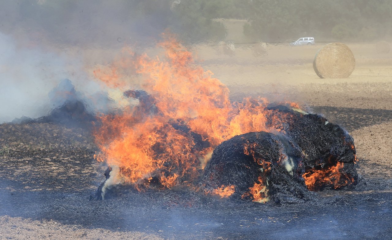 Autor: redAuf einem Feld zwischen Nohra und Wolkramshausen brannte eine Strohpresse sowie mehrere Strohballen...