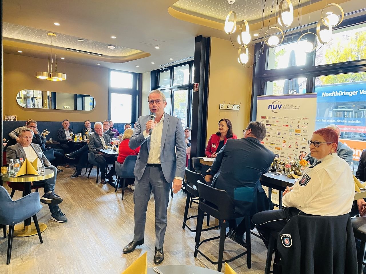 Das Treffen im Hotel Fürstenhof Nordhausen wurde durch den Vorstandsvorsitzenden des NUV, Niels Neu, eröffnet. Nach Ehrungen und Interna resümierte Neu die bisherigen Aktivitäten des Verbandes in den zurückliegenden Monaten und stellte den daraus resultierenden Forderungskatalog bezüglich der Energiekrise zur Diskussion. Niels Neu wies mit zahlreichen Beispielen darauf hin, wie schwierig die Situation sich aktuell für die mittelständische Wirtschaft darstellt und bemängelte, dass das Augenmerk auf den großen Konzernen liegt. Er machte deutlich, dass der NUV eindringlich dafür wirbt, Korrekturen bei der aktuellen Politik vorzunehmen, um schnell mittelständische Unternehmen und private Haushalte zu entlasten.
