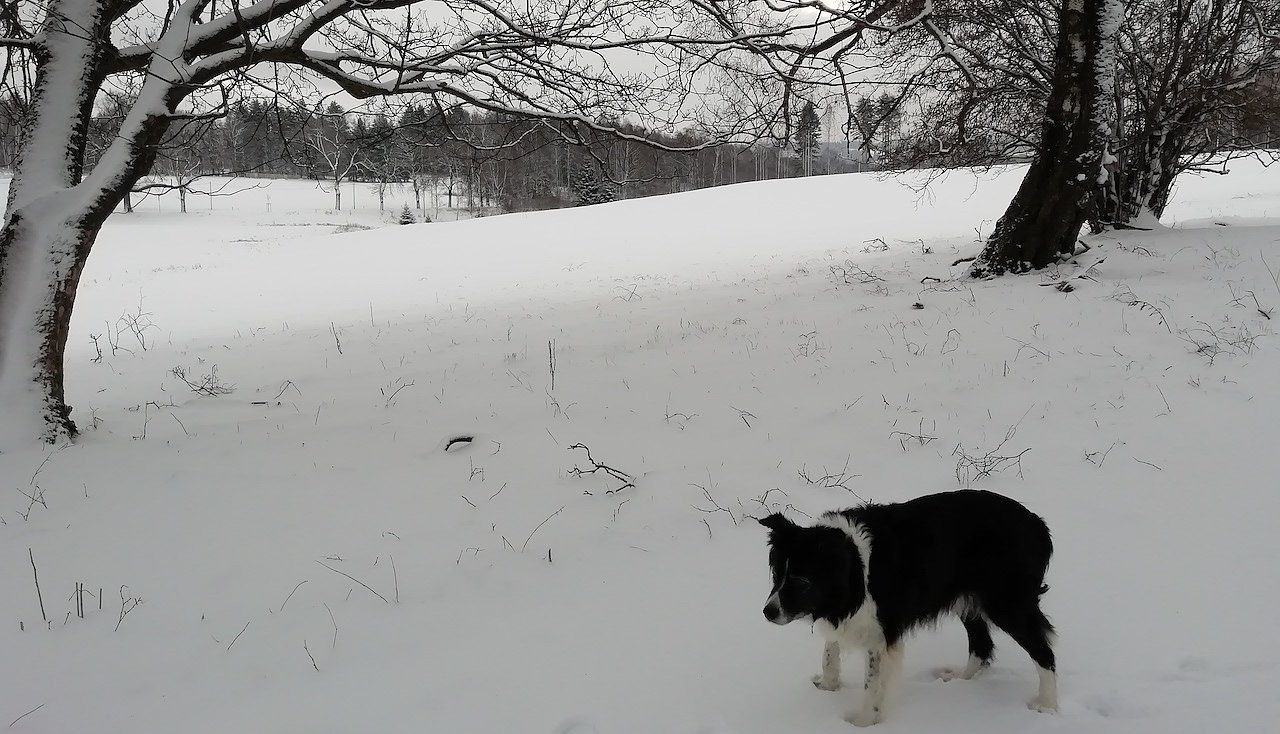 Minus 3 Grad, schwacher Wind und 5 Zentimeter Neuschnee erwarteten unseren Harzer Wetterhund heute Morgen in Sophienhof (Foto: Wolfgang Jörgens )