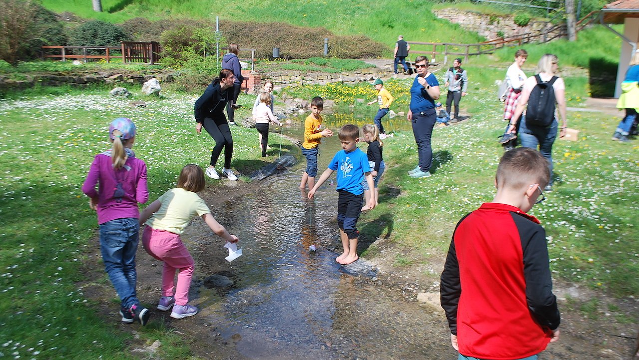 Der jährliche Familienwandertag ist schon zu einer schönen Tradition geworden. Deshalb trafen sich am Samstag, 22. April, die Hälfte der Kindervilla-Kinder mit ihren Eltern, Geschwistern, Großeltern und Freunden, um gemeinsam zu wandern. In diesem Jahr ging es, entsprechend des Projektthemas Wasser ist für alle da", zu den Frankenhäuser Quellen...