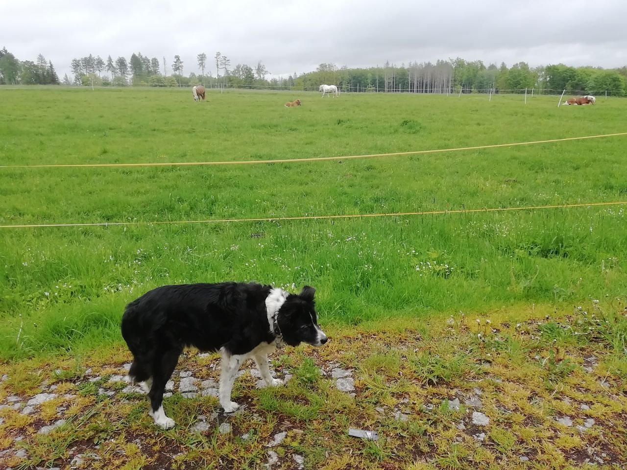 Für unsere Wetterhündin Cira war der Spaziergang in Sophienhof heute nicht so angenehm wie zuletzt: 13 Grad bei leichtem Wind und sich anbahnendem Regen (Foto: W. Jörgens)