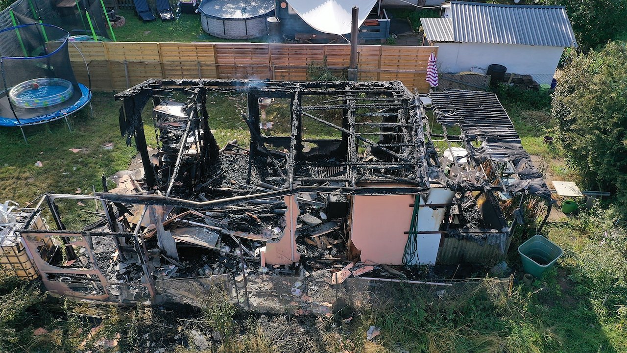 Zügig wurde mit den Löscharbeiten begonnen, um ein eventuelles Übergreifen der Flammen auf Bäume und weitere Gartenhäuser zu verhindern. Für die betroffene Gartenlaube gab es keine Rettung mehr, sie brannte komplett nieder.