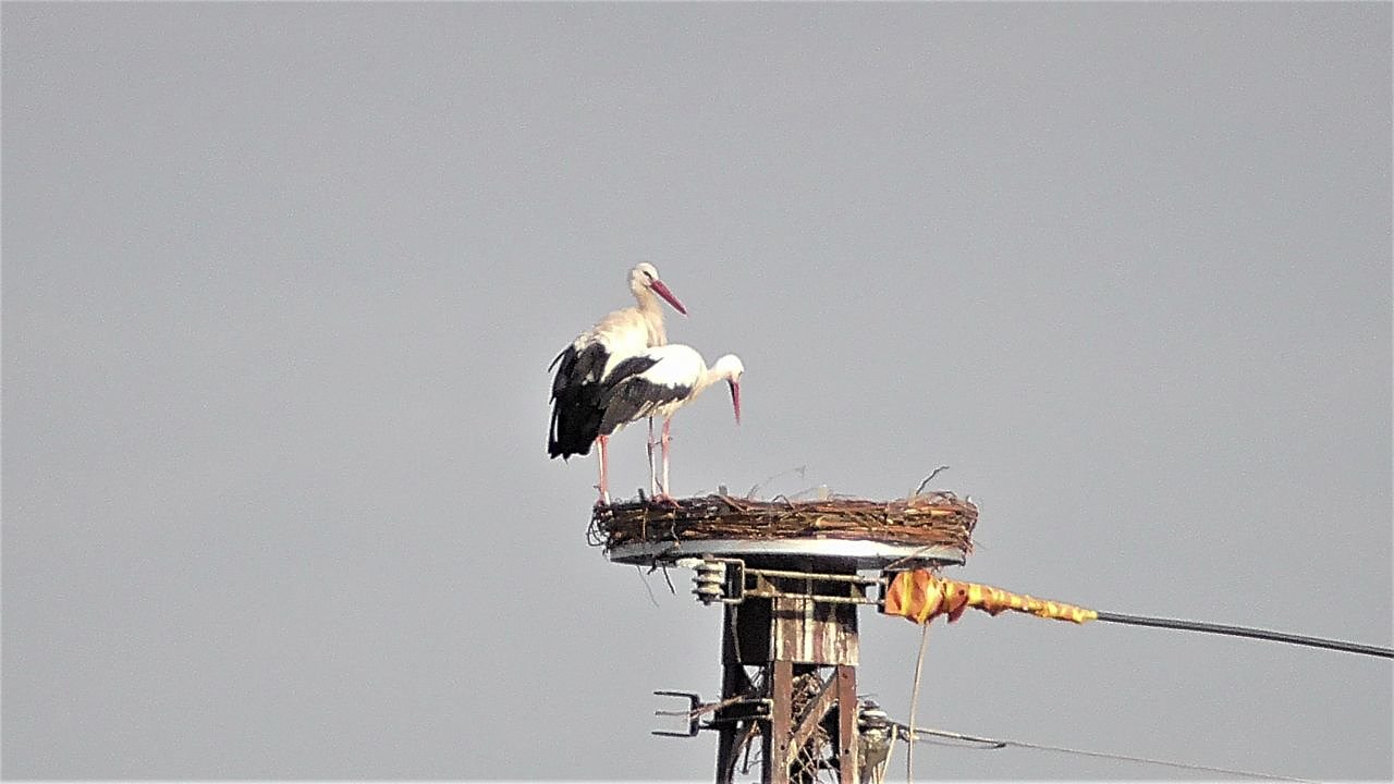 Vor zwei Wochen wurde eine Nisthilfe für Meister Adebar in Thürungen auf einem Stromgittermasten montiert. Die gefiederten Saisongäste waren neugierig aber zurückhaltend...