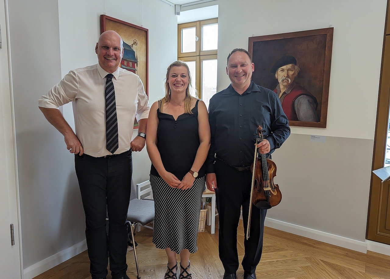 In musikalischer Begleitung von Marek Adam Smentek an der Violine, begrüßten Bürgermeister Steffen Grimm und Schlossmuseumsdirektorin Dr. Carolin Schäfer die zahlreich erschienenen Gäste und würdigten das Werk des 2011 verstorbenen Sondershäuser Künstlers.