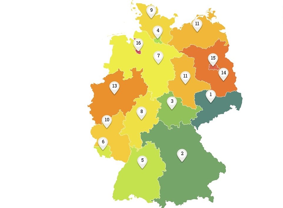 Das Fazit der Studienautoren des Instituts der deutschen Wirtschaft (IW): Auf zehn Jahre Fortschritt folgten zehn Jahre mit steigendem Handlungsdruck. Im aktuellen Ländervergleich schneiden erneut Sachsen, Bayern und Thüringen am besten ab.