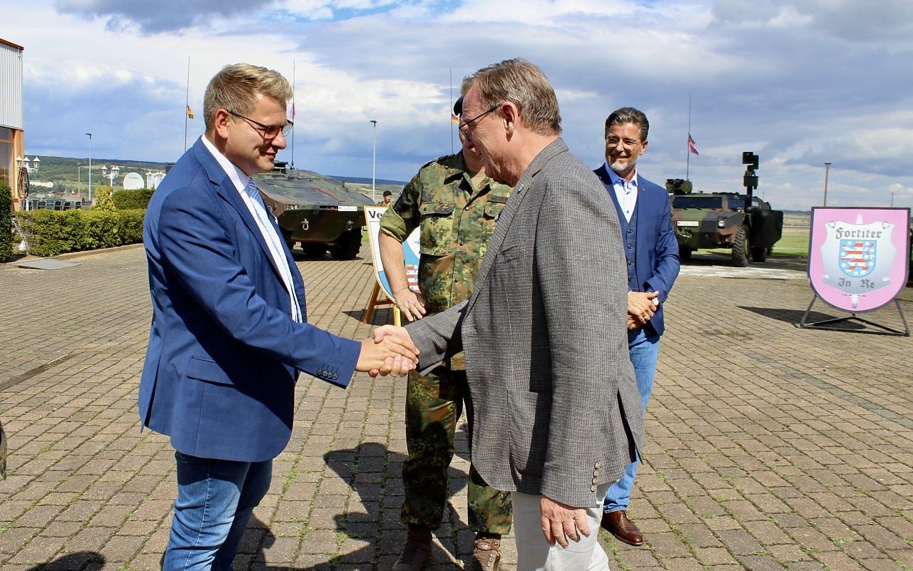 Oberstleutnant Weißenborn begrüßte Ministerpräsident Ramelow, Landrätin Antje Hochwind-Schneider und Bürgermeister Matthias Strejc und stellte ihnen die neusten Panzer und Führungssysteme vor.