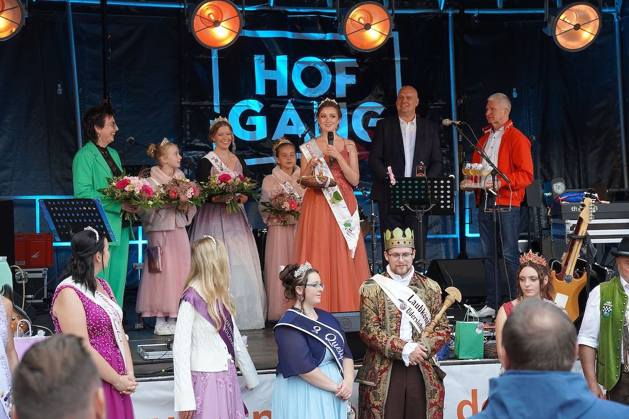 Viele Hoheiten waren gekommen, die amtierende Weinprinzessin Annalena I. übergab zusammen mit ihren jungen Kinderprinzessinnen Jette und Charlotte mit sehr emotionalen Abschiedsworten ihre Krone an die neue Weinprinzessin Carolin I. Bis 23 Uhr rockte die Hofgang und sorgte für gute Laune.