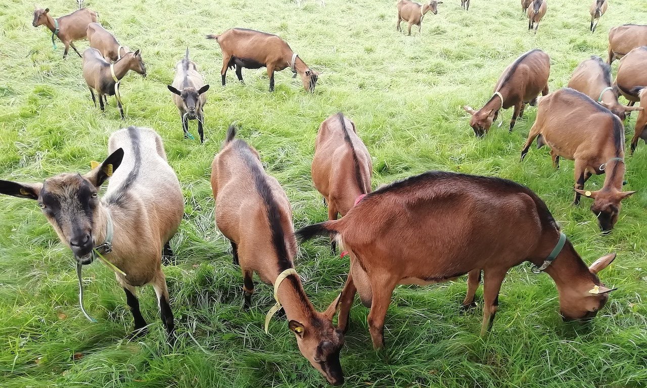 Sophienhof meldet heute 19 Grad, leichten Wind und zeitweise Sonne. Die Ziegen auf der Alm lassen es sich schmecken (Foto: W.Jörgens)