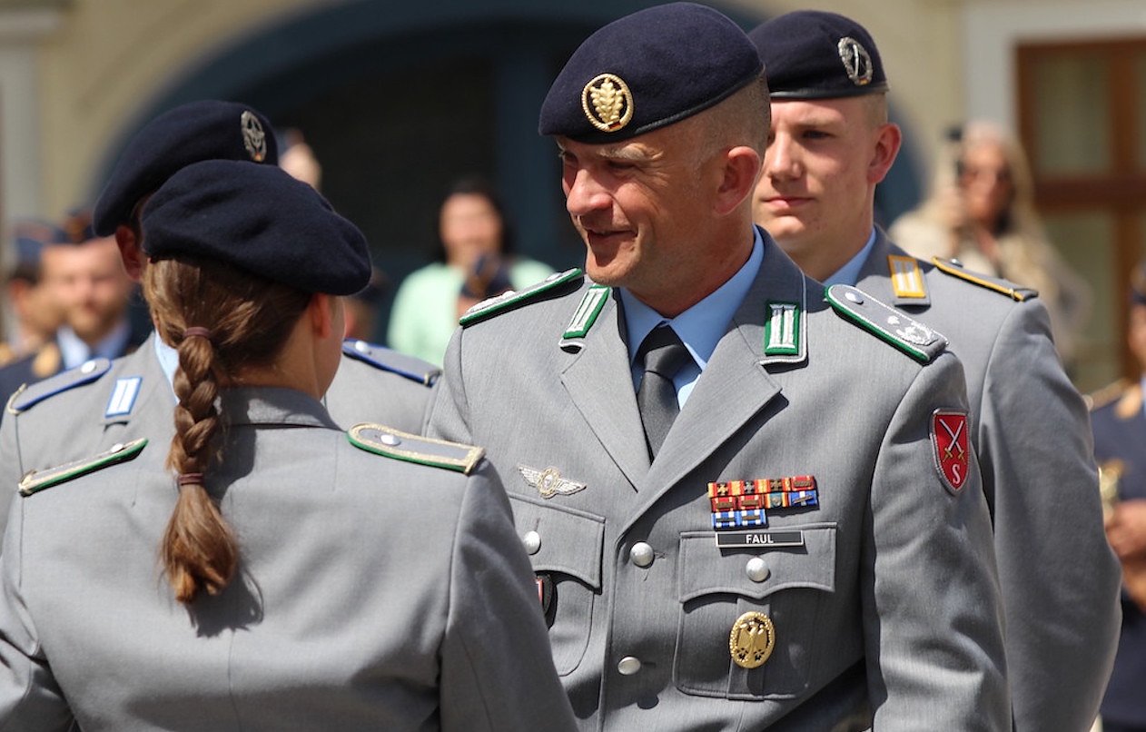 Oberstleutnant Daniel Faul bei der Rekrutenvereidigung auf dem Sondershäuser Marktplatz am 25. Mai 2022 (Foto: Eva Maria Wiegand)