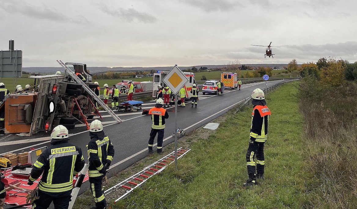 Zwei Menschen befanden sich im Fahrerhaus. Eine Person wurde durch die Einsatzkräfte gerettet. Dazu musste die Frontscheibe geöffnet werden. Zum Einsatz alarmiert wurden zunächst die Feuerwehren aus Leinefelde und Worbis. Wenig später wurden die Einsatzkräfte aus Breitenbach, Beuren und Breitenholz nachalarmiert.