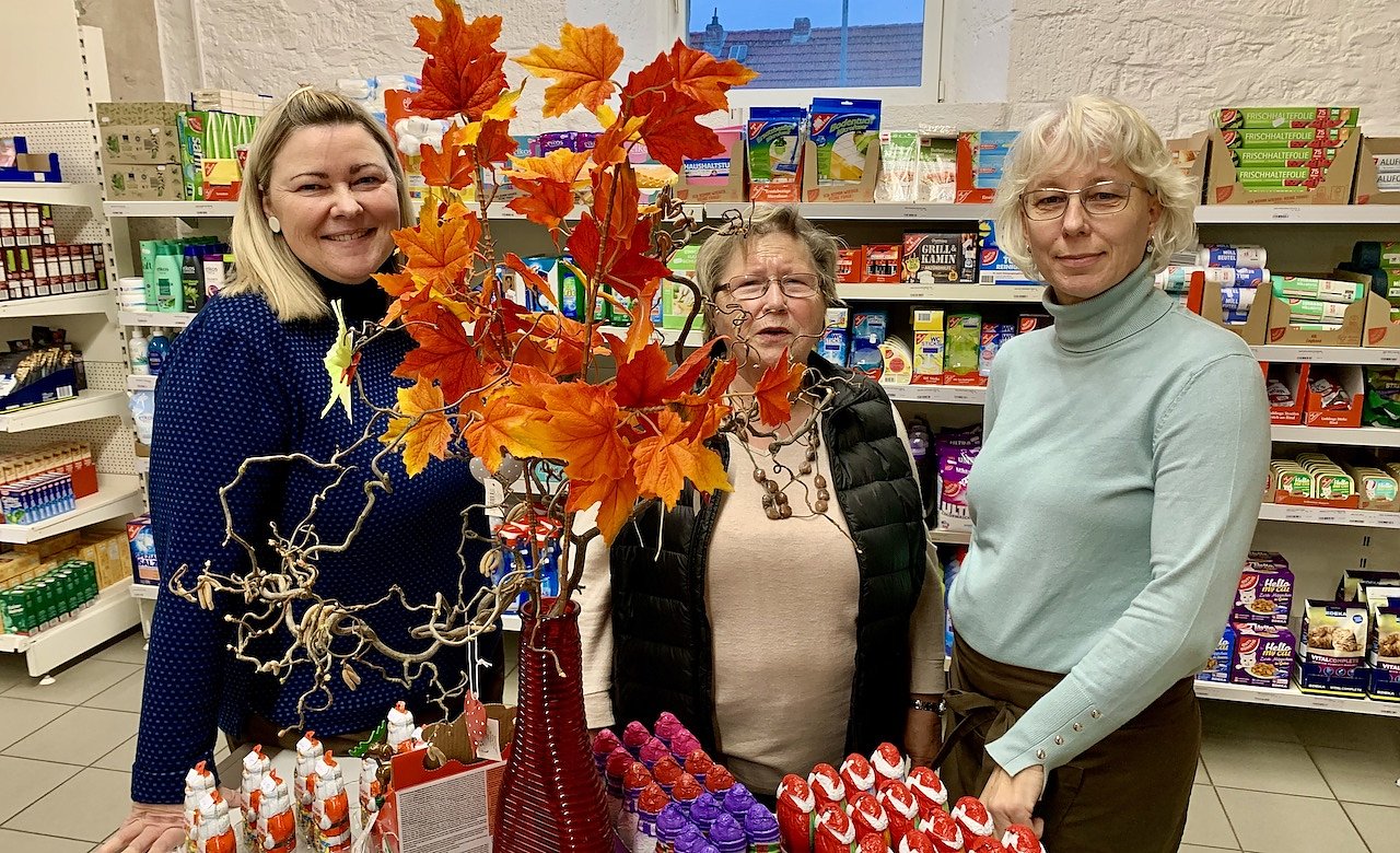 v.l. Anke Arndt, Verkaufsstellenleiterin im Alten Gut; Gudrun Oesterheld (ehem. Bürgermeisterin von Berka); Mitarbeiterin in Alten Gut (Foto: Eva Maria Wiegand)