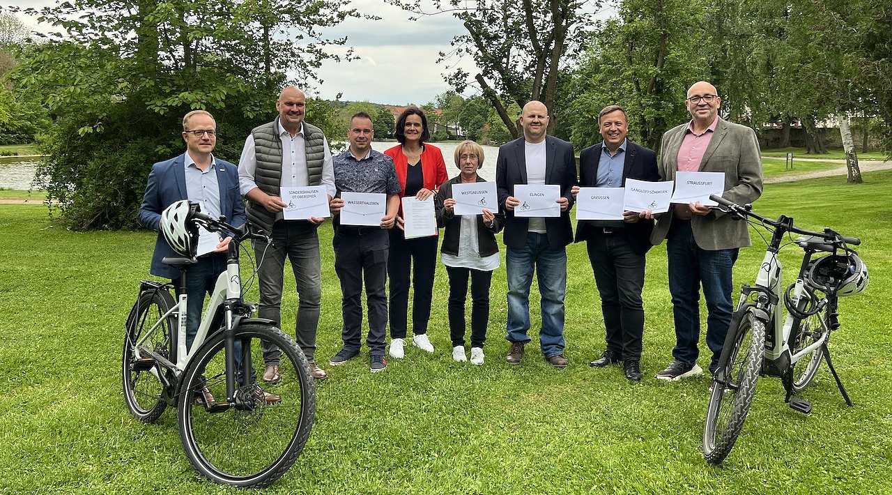 Unterzeichnung der Vereinbarung zu neuem Rad- und Wirtschaftsweg (Foto: Landratsamt Kyffhäuserkreis)
