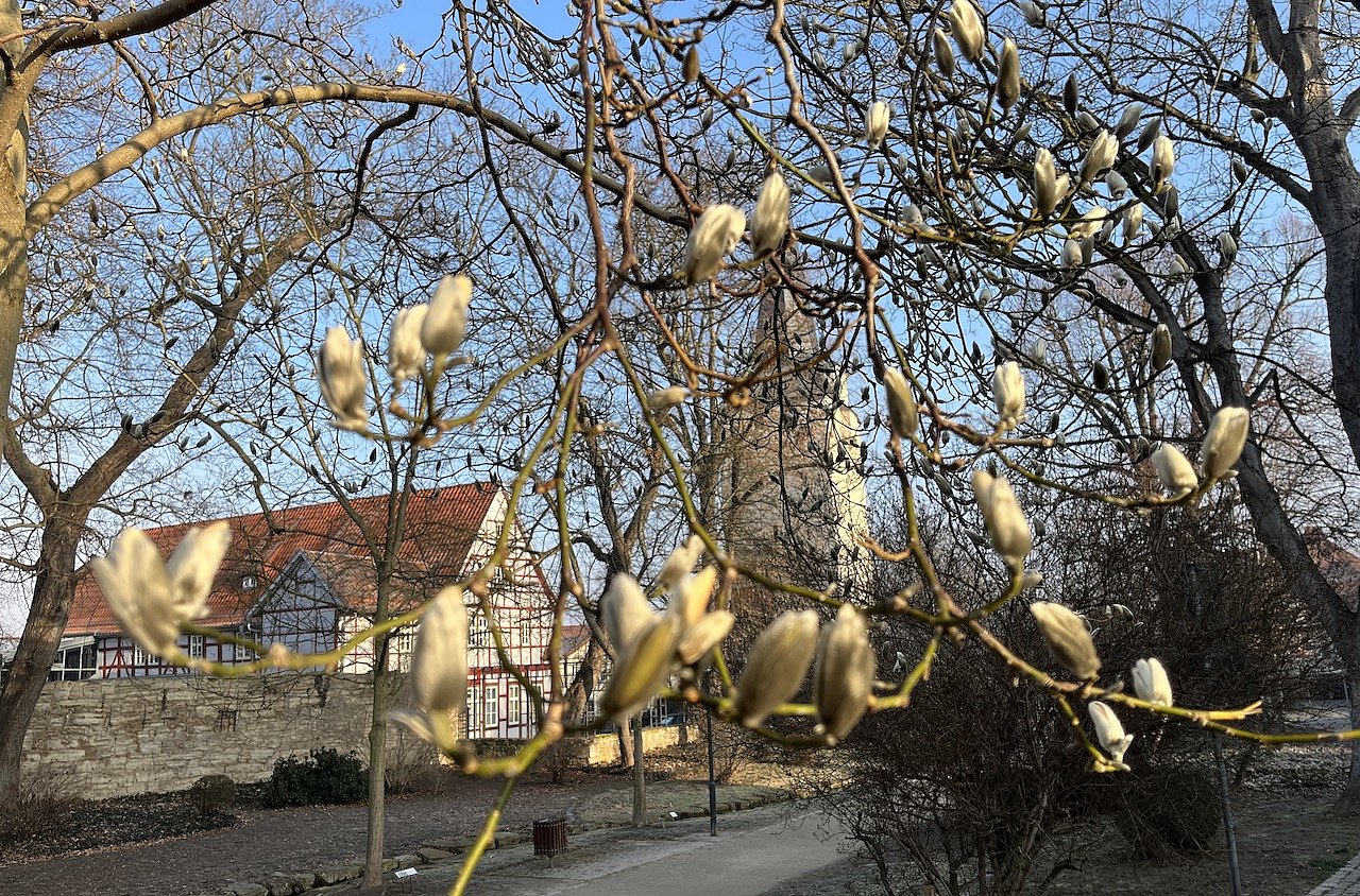 Die Magnolien im Bad Langensalzaer Kurpark lassen sich in ihrer Blüte nicht mehr aufhalten (Foto: oas)